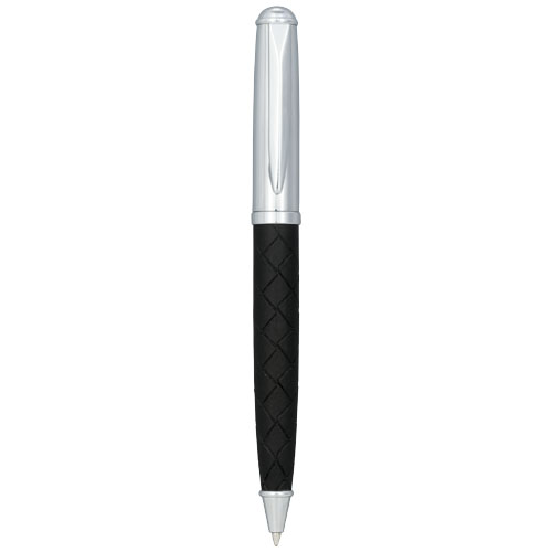 Kugelschreiber in exklusivem Design, das untere Gehäuse ist mit Leder in einem Kreuzlinienmuster umwickelt. Inklusive einer hochwertigen schwarzen Ersatzmine und verpackt in einer „LUXE“-Geschenkschachtel (16 x 4,5 x 2,5 cm).