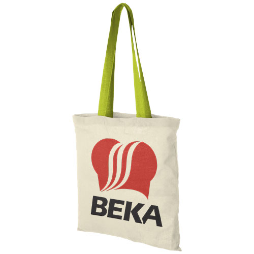Mit ihren farbenfrohen Tragegriffen setzt diese Tasche auf jeder Veranstaltung, jedem Kongress und jedem Festival einen Farbakzent. Die Nevada Tote Bag aus 100 g/m² Baumwolle ist eine preisgünstige und leichte Tasche mit einem offenen Hauptfach. Mit ihrem Fassungsvermögen von 7 Litern eignet sich diese Tasche perfekt für den Transport von alltäglichen Dingen, vom Telefon und der Geldbörse bis hin zum Lieblingsbuch oder Tablet. Dank der 30 cm langen Griffe lässt sich die Tasche gut tragen. Hergestellt in Indien und OEKO-Tex zertifiziert. Belastbar bis zu 5 kg Gewicht.