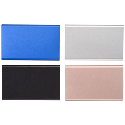 Diese schlanke und leichte Aluminium-Powerbank enthält einen Lithium-Polymer-Akku der Klasse A und hat eine Kapazität von 4000 mAh. Die LED Anzeigen leuchten während des Aufladens auf und zeigen die restliche Akkukapazität in der Powerbank an. Die Powerbank hat einen 5 V/1 A Eingang und einen 5 V/1 A Ausgang. Mit USB-zu-Micro-Ladekabel. Metalleffektlack. Verpackt in einer weißen Geschenkbox.