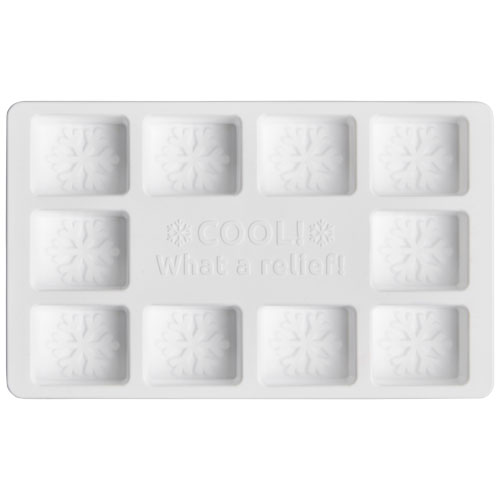 Dieser Eiswürfelbehälter bietet eine neuartige Möglichkeit, Ihr Logo oder Ihre Botschaft auf einem sehr nützlichen Produkt zu präsentieren. Ihre Botschaft kann im zentralen Bereich und/oder am Boden jeder einzelnen Würfelform durch Reliefprägung angebracht werden, um eine fühlbare Oberfläche zu schaffen.